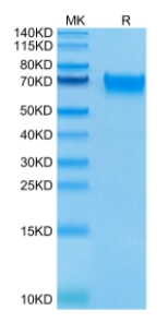 | Molecular Mass : | The protein has a predicted MW of 50 kDa. Due to glycosylation, the protein migrates to 60-72 kDa based on Tris-Bis PAGE result. |