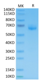 Molecular Mass : | The protein has a predicted MW of 52.6 kDa. Due to glycosylation, the protein migrates to 60-68 kDa based on Tris-Bis PAGE result. |