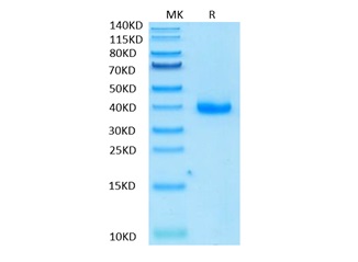 Molecular Mass : | The protein has a predicted MW of 28.6KDa. Due to glycosylation, the protein migrates to 38- 42KDa based on Bis-Tris PAGE result. |