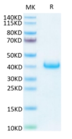 Molecular Mass : | The protein has a predicted MW of 28.6 kDa. Due to glycosylation, the protein migrates to 38-42 kDa based on Tris-Bis PAGE result. |