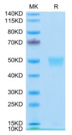 Molecular Mass : | The protein has a predicted MW of 35.4 kDa. Due to glycosylation, the protein migrates to 48-52 kDa based on Tris-Bis PAGE result. |