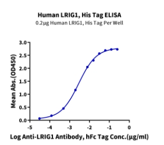 | Bio-activity : | Immobilized Human LRIG1, His Tag at 2ug/ml (100ul/well) on the plate. Dose response curve for Anti-LRIG1 Antibody, hFc Tag with the EC50 of 2.9ng/ml determined by ELISA. |