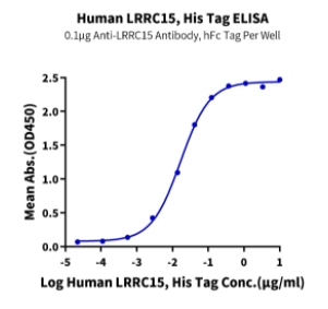 | Bio-activity : | Immobilized Anti-LRRC15 Antibody, hFc Tag at 1ug/ml (100ul/well) on the plate. Dose response curve for Human LRRC15, His Tag with the EC50 of 16.7ng/ml determined by ELISA. |