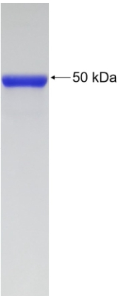 | Form : | The purified protein was lyophilized from sterile phosphate-buffered saline (PBS: 58 mM Na₂HPO₄, 17 mM NaH₂PO₄, 68 mM NaCl, pH 8.0). Prior to lyophilization, 5% (w/v) trehalose and 5% (w/v) mannitol were incorporated as cryoprotective excipients. The protein was eluted with a buffer containing 100 mM reduced glutathione (GSH). |