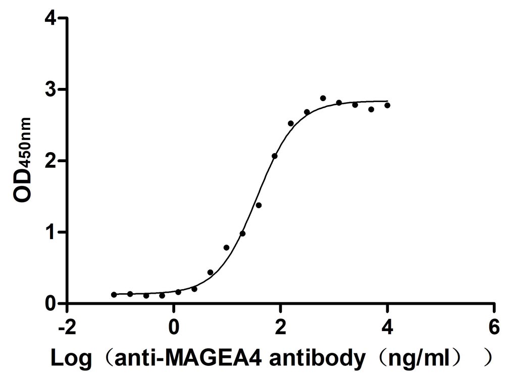 | Bio-activity : | Measured by its binding ability in a functional ELISA. Immobilized Human MAGEA4 at 2 μg/Ml can bind anti-MAGEA4 recombinant antibody, the EC50 is 30.33-43.10 ng/mL. |