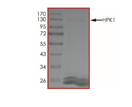 | Product Overview : | Recombinant full-length human HPK1 was expressed by baculovirus in Sf9 insect cells using an N-terminal GST tag. |