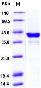 | Molecular Mass : | The recombinant human MAPK14 consists of 378 amino acids and has a calculated molecular mass of 43.7 kDa. The recombinant protein migrates as an approximately 43 kDa band in SDS-PAGE under reducing conditions. |