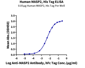 | Bio-activity : | Immobilized Human MASP2, His Tag at 0.5μg/ml (100μl/Well). Dose response curve for Anti-MASP2 Antibody, hFc Tag with the EC50 of 5.0ng/ml determined by ELISA. |