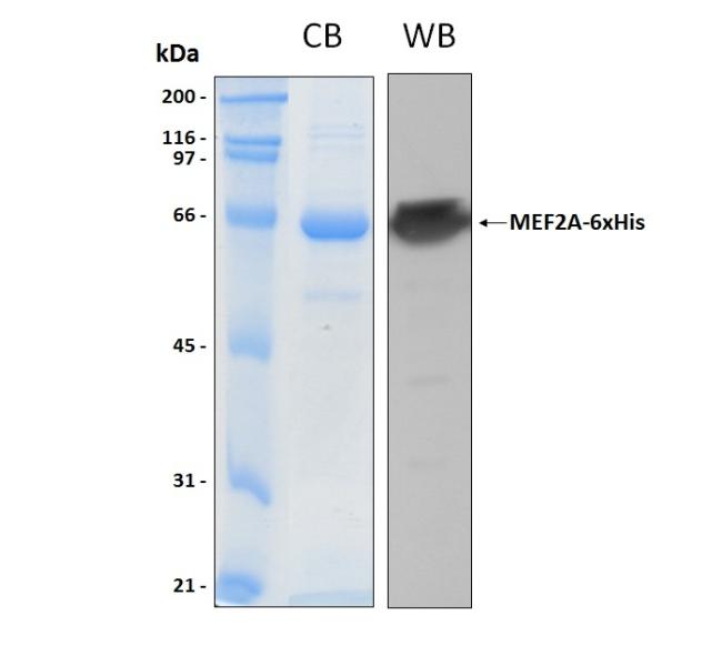 | Product Overview : | Recombinant Human MEF2A Protein (1-499 (Full Length)) with 6xHis tag was expressed in E. coli. |