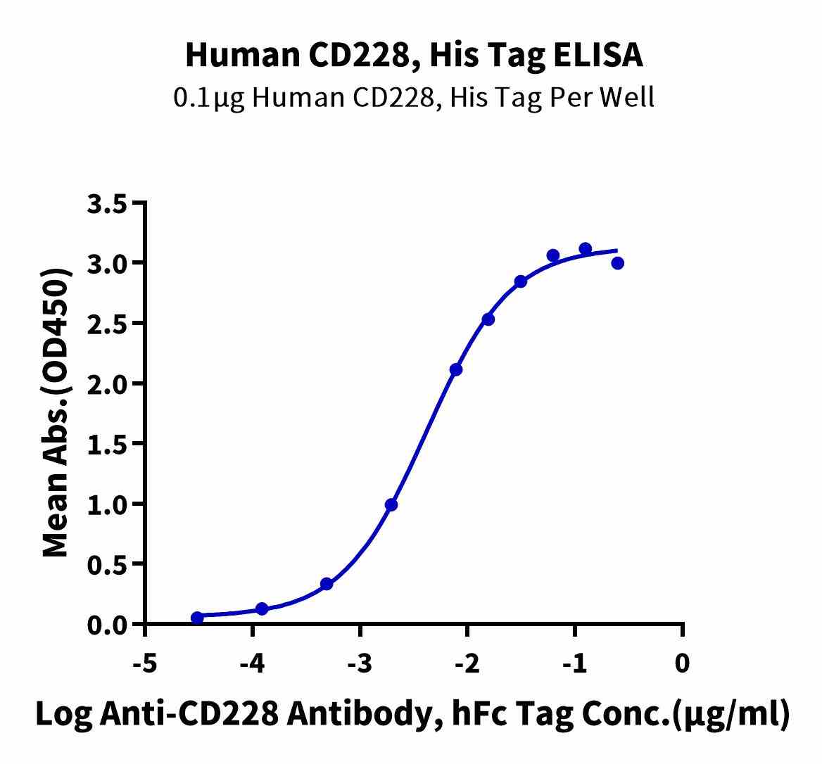 | Bio-activity : | Immobilized Human CD228, His Tag at 1μg/ml (100μl/well) on the plate. Dose response curve for Anti-CD228 Antibody, hFc Tag with the EC50 of 4.1ng/ml determined by ELISA. |