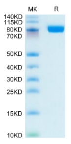 | Molecular Mass : | The protein has a predicted MW of 80.9 kDa. Due to glycosylation, the protein migrates to 81-110 kDa based on Tris-Bis PAGE result. |