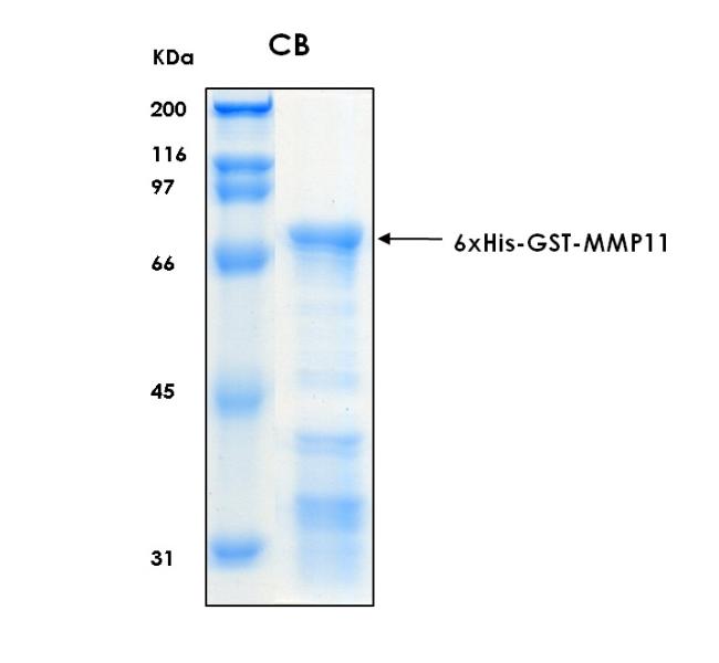 >80% confirmed by 10% SDS-PAGE stained with Coomassie Blue (CB). |
