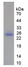 Bio-activity : | Matrix Metalloproteinase 13 (MMP13) is a member of the matrix metalloproteinase (MMP) family. MMP13 has been proposed to participate in aggrecan degradation associated with osteoarthritis and cleavage of type II collagen in osteoarthritic cartilage explants and in tumor progression and metastasis. MMP13 is likely to play a crucial role in the modulation of extracellular matrix degradation and cell-matrix interactions. In addition, it can cleave type I, III, IV, IX, X and XIV collagens and fibronectin. Thus we have chosed casein-zymography to measure the activity of MMP13. Briefly, various concentrations of MMP13 (10µg, 5µg, 1µg, 0.1µg, 0.01µg) were denatured by SDS loading buffer, electrophoresed through sodium dodecylsulphat-polyacrylamide gel (SDS-PAGE; 15% gels) containing casein (1 mg/mL) with nonreducing conditions. After renaturation, incubation and CCB-stained, active MMP13 would hydrolyze casein nearby, which was indicated by the white bands on the gel. In this experiment we use heat-denatured MMP13 protein as negative control, and trypsase (1ug/mL) as positive control. |