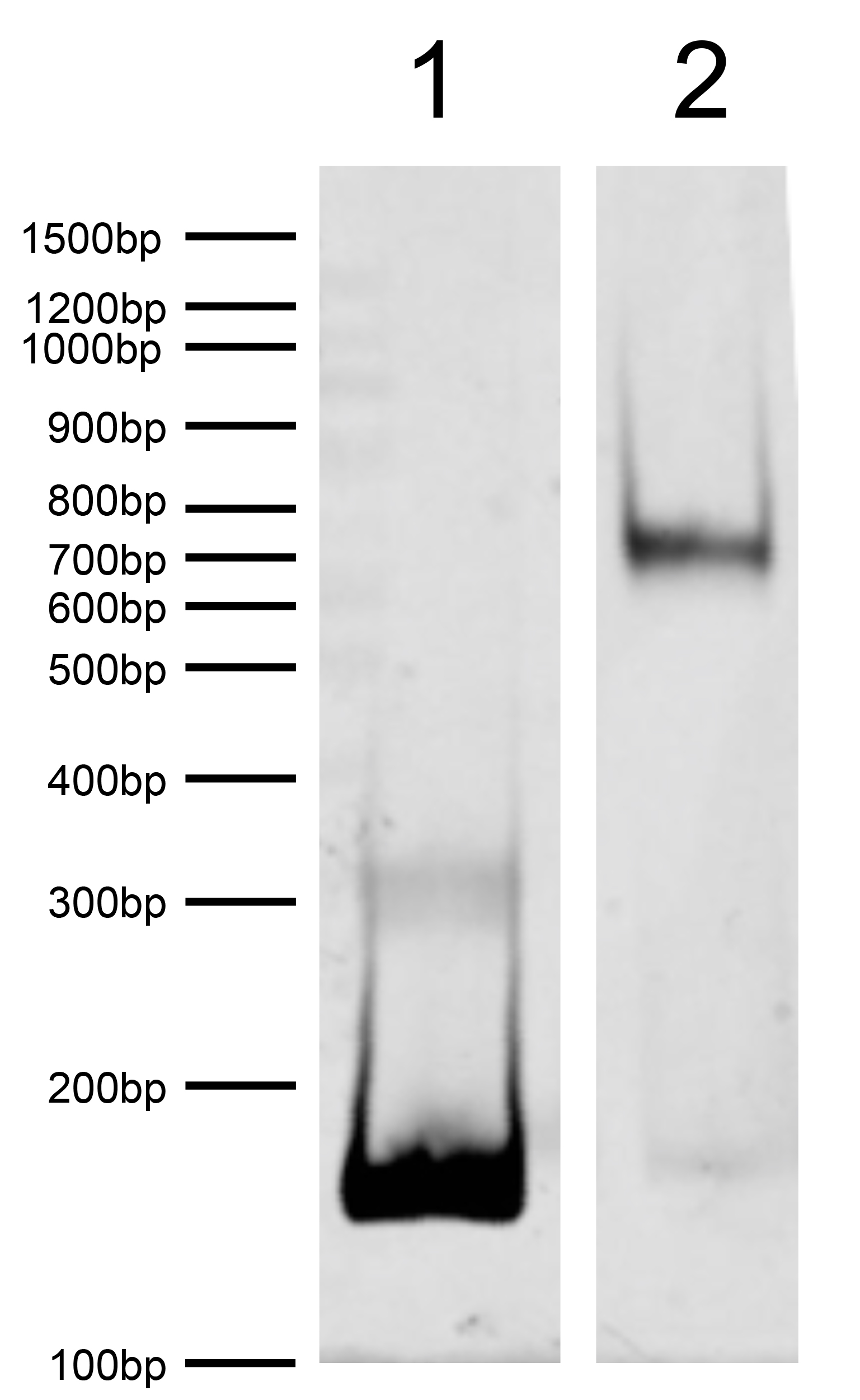 | Description : | Mononucleosomes assembled from recombinant human histones expressed in E. coli (two each of histones H2A, H2B, H3.1 and H4; accession numbers: H2A-P04908; H2B-O60814; H3.1-P68431; H4-P62805) wrapped with a 147 base pairs of 601 positioning sequence DNA. The nucleosome is the basic subunit of chromatin. The 601 sequence, identified by Lowary and Widom, is a 147-base pair sequence that has high affinity for histone octamers and is useful for nucleosome assembly and contains a 5' desthiobiotin-TEG group. Desthiobiotin has a weaker affinity (Kd = 10-11) for avidin-family proteins than does biotin (Kd = 10-15). |