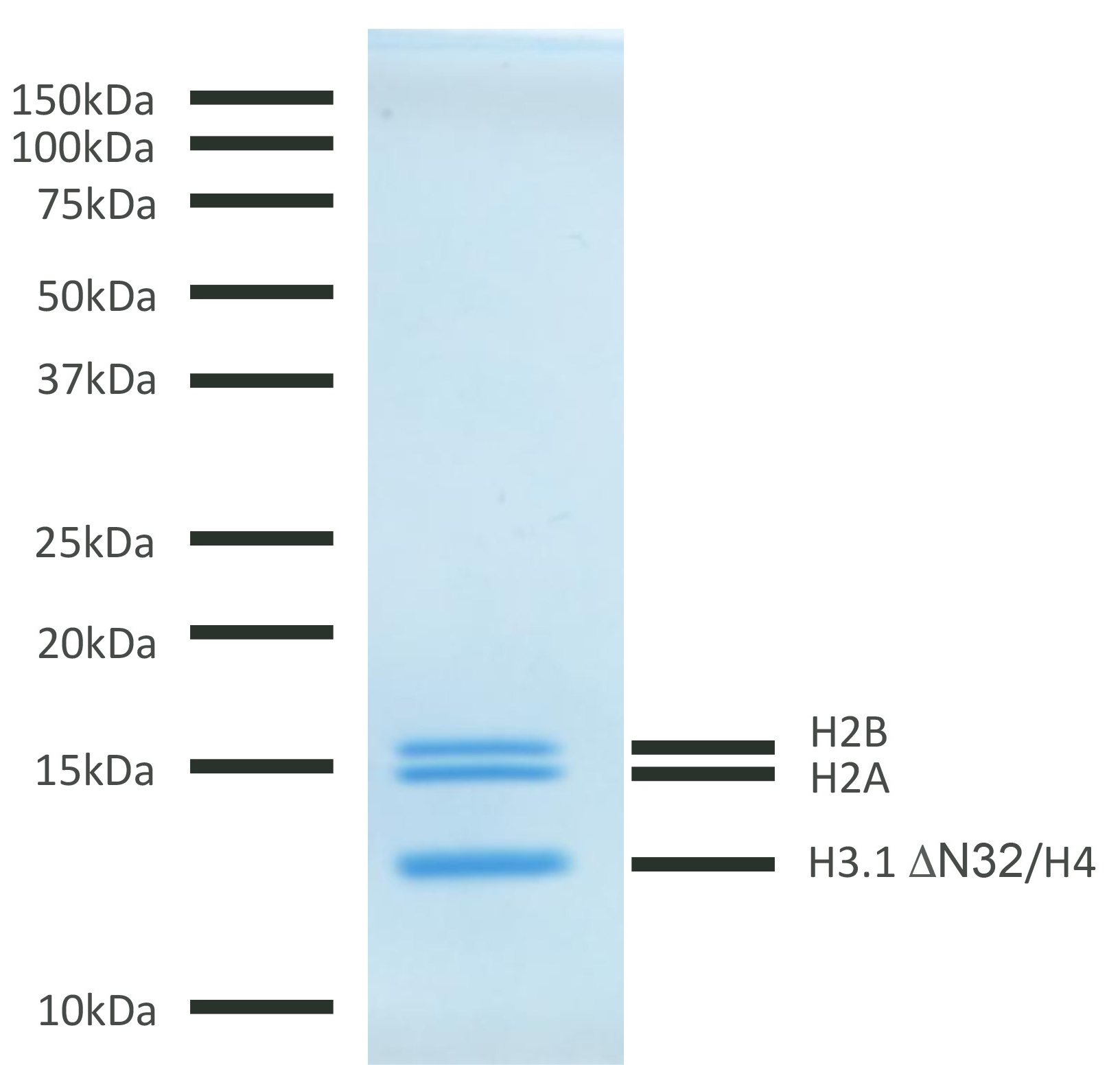 Applications : | Mononucleosomes (H3.1ΔN32), Human Recombinant are highly purified and suitable for use as substrates in enzyme screening assays, structural studies, or effector protein binding experiments. The N-terminal deletion allows for the study of the role of the N-terminus in many aspects of chromatin biology. |