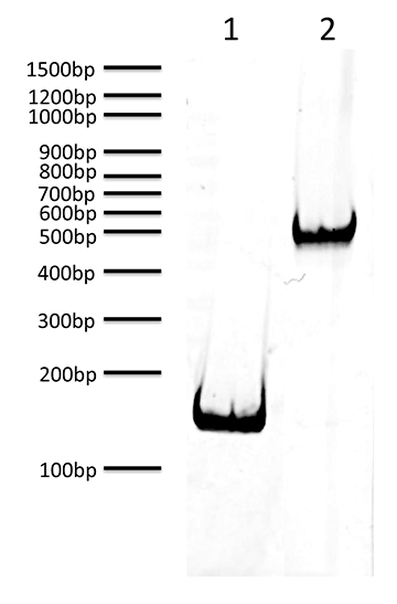 | Description : | Recombinant human histone H3.3 (H3F3A, H3.3A, H3F3, accession P84243) containing a methionine at position 4, expressed in E. coli. Histone H3 is one of the four proteins that are present in the nucleosome, the basic repeating unit subunit of chromatin, consisting of 147 base pairs of DNA wrapped around an octamer of core histone proteins (H2A, H2B, H3 and H4). H3.3 is a histone variant, a non-allelelic replacement histone found in regions of high chromatin turnover outside of S-phase (e.g. at actively transcribed genes). The substitution of V for G at position 34 is associated with pediatric diffuse intrinsic pontine gliomas (DIPGs) with and diminished levels of H3K36 methylation. The 601 sequence, identified by Lowary and Widom, is a 147-base pair sequence that has high affinity for histone octamers and is useful for nucleosome assembly and contains a 5' biotin-TEG group. |