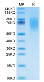 | Molecular Mass : | The protein has a predicted MW of 31.3 kDa. Due to glycosylation, the protein migrates to 50-80 kDa based on Tris-Bis PAGE result. |