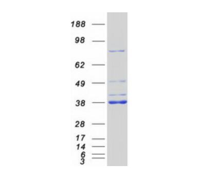 > 80% as determined by SDS-PAGE and Coomassie blue staining |