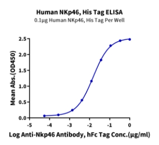 | Bio-activity : | Immobilized Human NKp46, His Tag at 1μg/ml (100μl/well) on the plate. Dose response curve for Anti-Nkp46 Antibody, hFc Tag with the EC50 of 15.0ng/ml determined by ELISA. |
