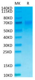| Molecular Mass : | The protein has a predicted MW of 52.9 kDa. Due to glycosylation, the protein migrates to 65-75 kDa based on Tris-Bis PAGE result. |