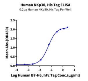 | Bio-activity : | Immobilized Human NKp30, His Tag at 2μg/ml (100μl/well) on the plate. Dose response curve for Human B7-H6, hFc Tag with the EC50 of 55.9ng/ml determined by ELISA. |