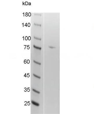 | Molecular Mass : | The protein has a calculated MW of 73.91 kDa. The protein migrates as 75 kDa under reducing condition (SDS-PAGE analysis). |