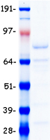 > 80% as determined by SDS-PAGE and Coomassie blue staining |