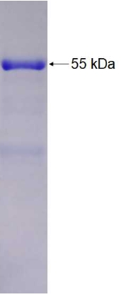 | Form : | The purified protein was lyophilized from sterile phosphate-buffered saline (PBS: 58 mM Na₂HPO₄, 17 mM NaH₂PO₄, 68 mM NaCl, pH 8.0). Prior to lyophilization, 5% (w/v) trehalose and 5% (w/v) mannitol were incorporated as cryoprotective excipients. The protein was eluted with a buffer containing 100 mM reduced glutathione (GSH). |