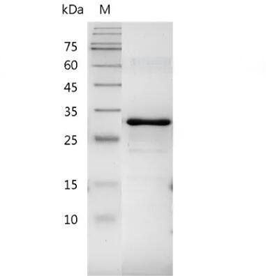 | Molecular Mass : | The protein has a calculated MW of 24.29 kDa. The protein migrates as 28-30 kDa under reducing condition (SDS-PAGE analysis). |