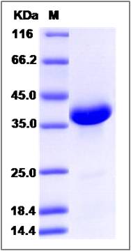 | Molecular Mass : | The recombinant human NRN1L/mFc comprises 337 amino acids and has a predicted molecular mass of 37.6 kDa. The apparent molecular mass of the monomer is approximately 38 kDa in SDS-PAGE under reducing conditions due to glycosylation. |