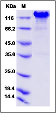 Molecular Mass : | The recombinant human NRP2/Fc is a disulfide-linked homodimer. The reduced monomer comprises 1072 amino acids and has a predicted molecular mass of 120.7 kDa. The apparent molecular mass of the protein is approximately 119-129 kDa in SDS-PAGE under reduci |