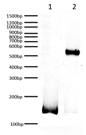 | Description : | Mononucleosomes assembled from recombinant human histones expressed in E. coli (two each of histones H2A, H2B, H3 and H4; accession numbers: H2A-P04908; H2B-O60814; H3.1-P68431; H4-P62805) wrapped by 147 base pairs of 601 positioning sequence DNA. Histone H3 (created by a proprietary synthetic method) contains monomethyl-lysine at position 27. The nucleosome is the basic subunit of chromatin. The 601 sequence, identified by Lowary and Widom, is a 147-base pair sequence that has high affinity for histone octamers and is useful for nucleosome assembly and contains a 5' biotin-TEG group. |