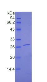 27kDa as determined by SDS-PAGE reducing conditions. |