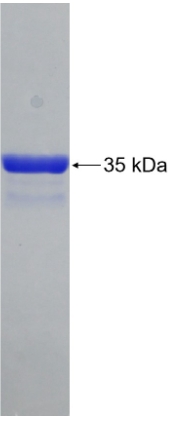 | Form : | The purified protein was lyophilized from sterile phosphate-buffered saline (PBS: 58 mM Na₂HPO₄, 17 mM NaH₂PO₄, 68 mM NaCl, pH 8.0). Prior to lyophilization, 5% (w/v) trehalose and 5% (w/v) mannitol were incorporated as cryoprotective excipients. The protein was eluted with a buffer containing 100 mM reduced glutathione (GSH). |