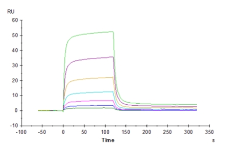 | Bio-activity : | Human PD-1, hFc Tag captured on CM5 Chip via Protein A can bind Biotinylated Human PD-L2, His-Avi Tag with an affinity constant of 0.344 uM as determined in SPR assay (Biacore T200). |