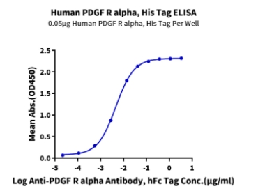 | Bio-activity : | Immobilized Human PDGF R alpha, His Tag at 0.5ug/ml (100ul/Well) on the plate. Dose response curve for Anti-PDGF R alpha Antibody, hFc Tag with the EC50 of 4.6ng/ml determined by ELISA. |