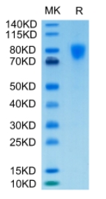 Molecular Mass : | The protein has a predicted MW of 59.2 kDa. Due to glycosylation, the protein migrates to 70-83 kDa based on Tris-Bis PAGE result. |