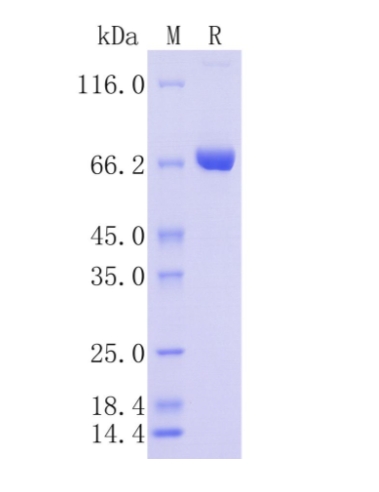 | Product Overview : | Recombinant human Periostin/OSF-2 protein (Q15063) (Asn 22-Ala 631) with both His, Flag tag at the C-terminus was expressed in HEK293. |