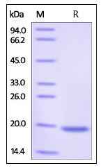 | Molecular Mass : | The protein has a calculated MW of 15.0 kDa. The protein migrates as 19 kDa under reducing (R) condition (SDS-PAGE). |