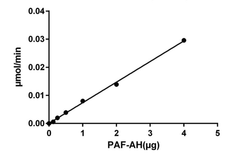 | Unit Definition : | One unit is defined as the amount of enzyme required to produce 1 μmol of TNB per minute at 37 centigrade in buffer containing 100 mM Tris-HCl, pH 7.2, and 300 μM of the substrate 2-Thio PAF. |