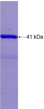 Form : | The purified protein was lyophilized from sterile phosphate-buffered saline (PBS: 58 mM Na₂HPO₄, 17 mM NaH₂PO₄, 68 mM NaCl, pH 8.0). Prior to lyophilization, 5% (w/v) trehalose and 5% (w/v) mannitol were incorporated as cryoprotective excipients. The protein was eluted with a buffer containing 100 mM reduced glutathione (GSH). |