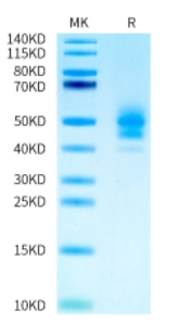 | Molecular Mass : | The protein has a predicted MW of 34.3 kDa. Due to glycosylation, the protein migrates to 40-50 kDa based on Tris-Bis PAGE result. |