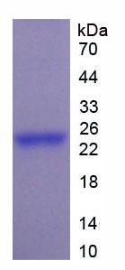 24kDa as determined by SDS-PAGE reducing conditions. |