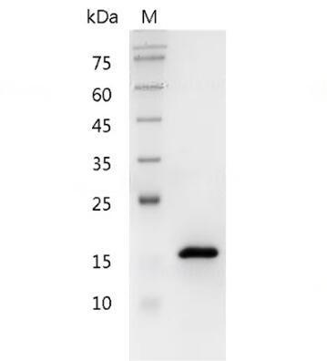 Molecular Mass : | The protein has a calculated MW of 19.89 kDa. The protein migrates as 18 kDa under reducing condition (SDS-PAGE analysis). |