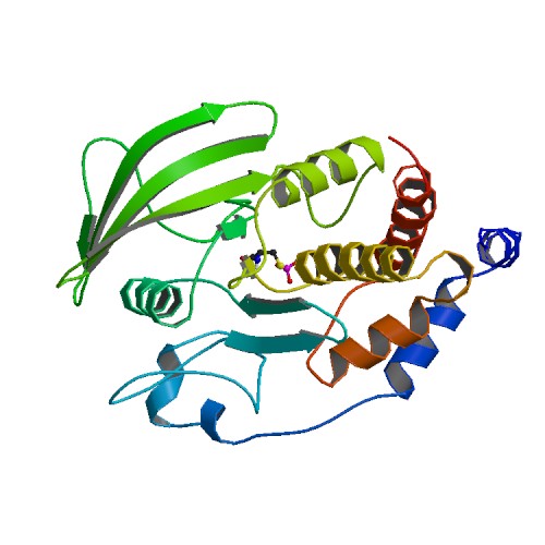 | Description : | Protein tyrosine phosphatase nonreceptor, type 1 (PTPN1) is the founding member of the protein tyrosine phosphatase (PTP) family. PTPN1 catalyze the hydrolysis of the phosphate monoesters specifically from tyrosine residues. PTPN1 is known to be involved in signaling pathways that regulate a variety of cellular processes including cell growth and oncogenic transformation. PTPN1 also has been shown to act as a negative regulator of insulin signaling. PTPN1 has also been reported to dephosphorylate epidermal growth factor receptor kinase, which implicated the role of this phosphatase in cell growth control and cell response to interferon stimulation. |