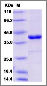| Molecular Mass : | The secreted recombinant human PTPN12 consists of 357 amino acids and predicts a molecular mass of 41.8 KDa. The apparent molecular mass of the protein is approximately 41 KDa in SDS-PAGE under reducing conditions due to glycosylation. |