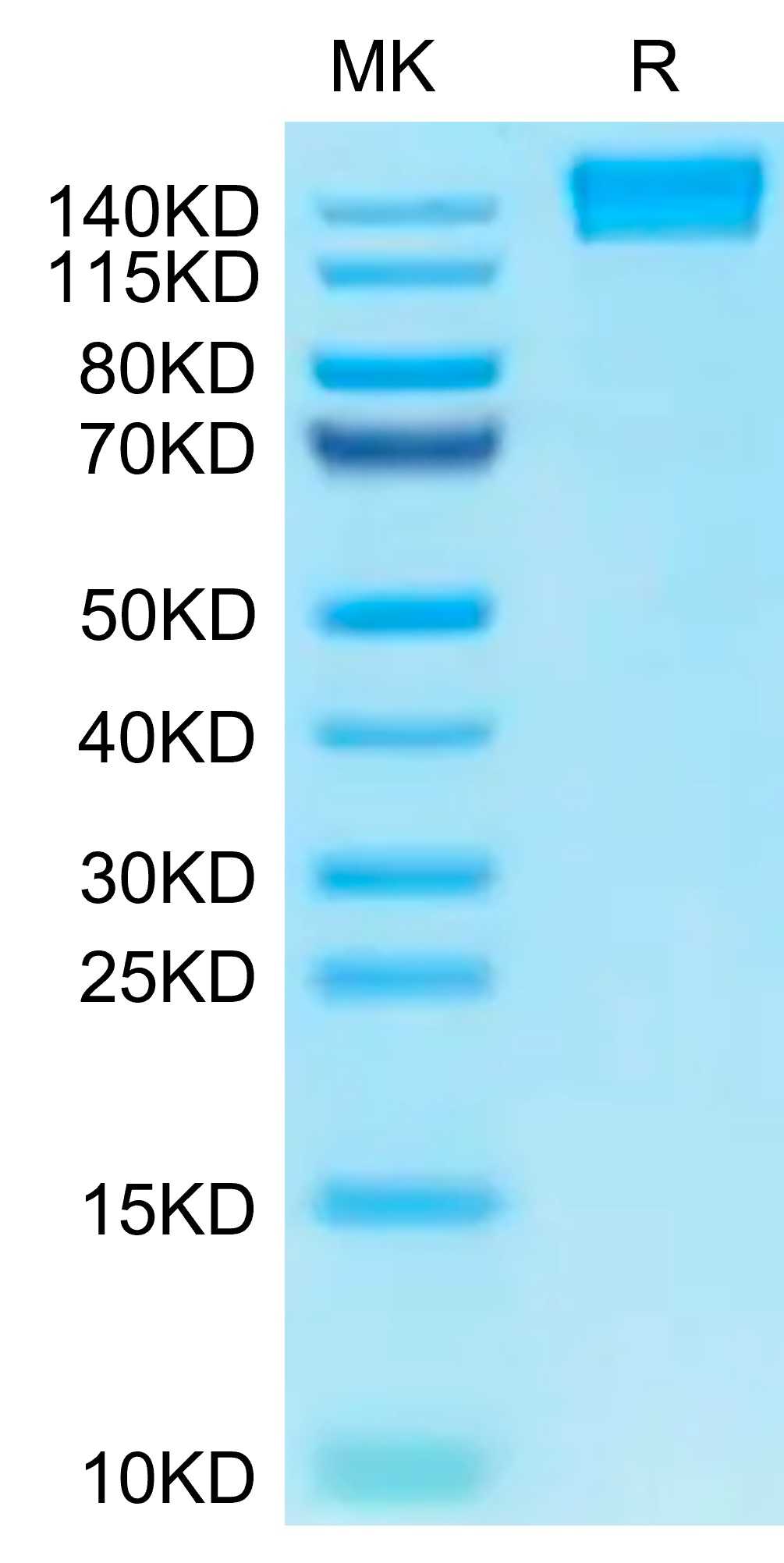| Molecular Mass : | The protein has a predicted MW of 87.53 kDa. Due to glycosylation, the protein migrates to 120-160 kDa based on Tris-Bis PAGE result. |