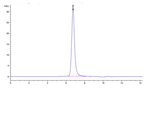 | Molecular Mass : | The protein has a predicted MW of 37.2 kDa.Due to glycosylation, the protein migrates to 46-48KDa based on Bis-Tris PAGE result. |