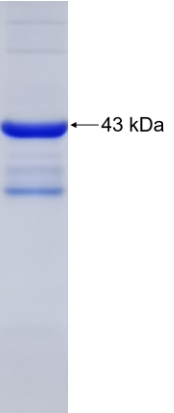 | Form : | The purified protein was lyophilized from sterile phosphate-buffered saline (PBS: 58 mM Na₂HPO₄, 17 mM NaH₂PO₄, 68 mM NaCl, pH 8.0). Prior to lyophilization, 5% (w/v) trehalose and 5% (w/v) mannitol were incorporated as cryoprotective excipients. The protein was eluted with a buffer containing 100 mM reduced glutathione (GSH). |