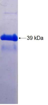 | Form : | The purified protein was lyophilized from sterile phosphate-buffered saline (PBS: 58 mM Na₂HPO₄, 17 mM NaH₂PO₄, 68 mM NaCl, pH 8.0). Prior to lyophilization, 5% (w/v) trehalose and 5% (w/v) mannitol were incorporated as cryoprotective excipients. The protein was eluted with a buffer containing 100 mM reduced glutathione (GSH). |